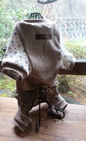 プチローズのシャーリングワッシャーTシャツ地×モカ生地のとってもお洒落で動きやすい春夏向きのロンパースです♪ふんわり柔らかなワッシャー