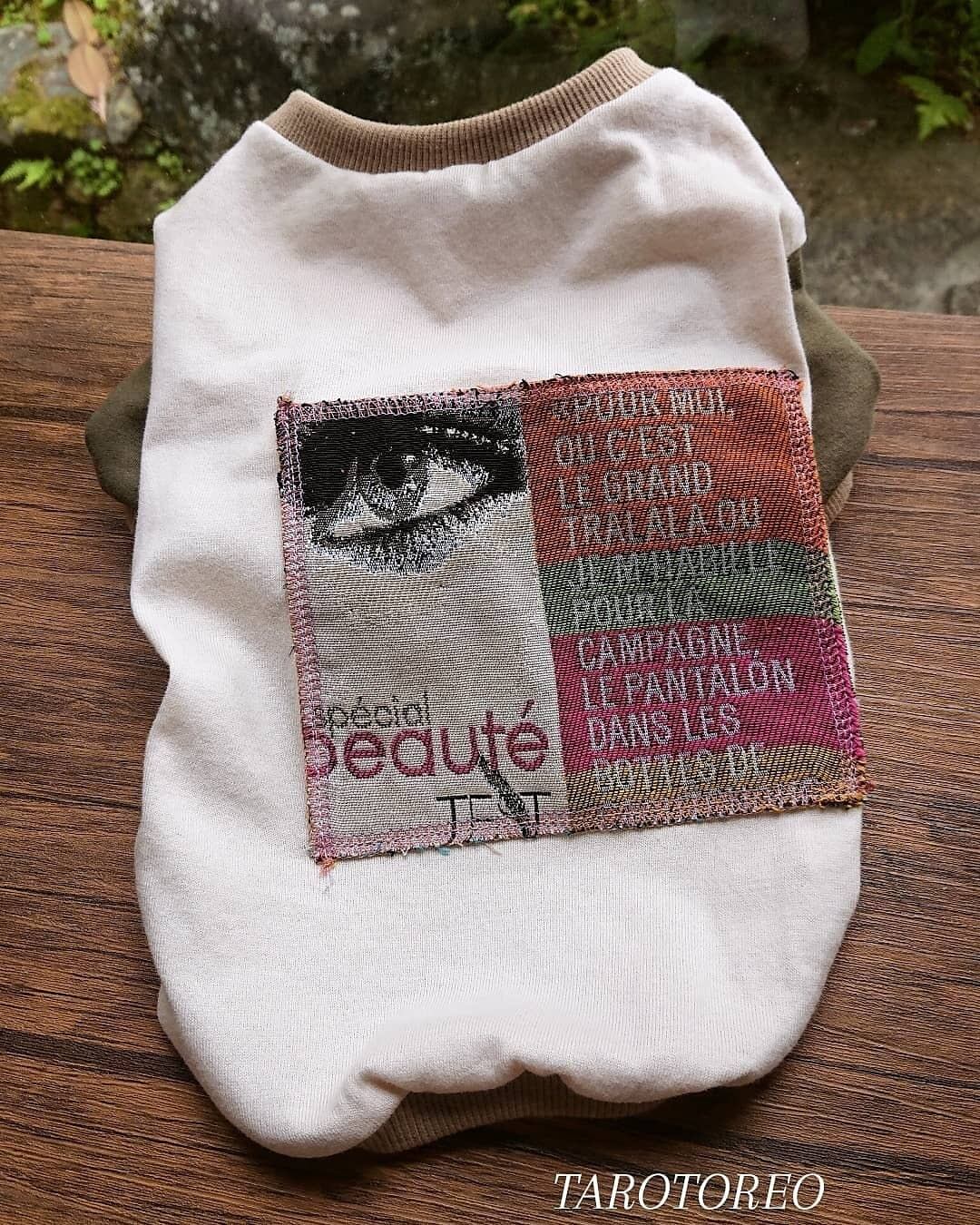 背中の絵柄は比較的柔らかいジャガード織りで縫い付けになります。小型犬専用です。