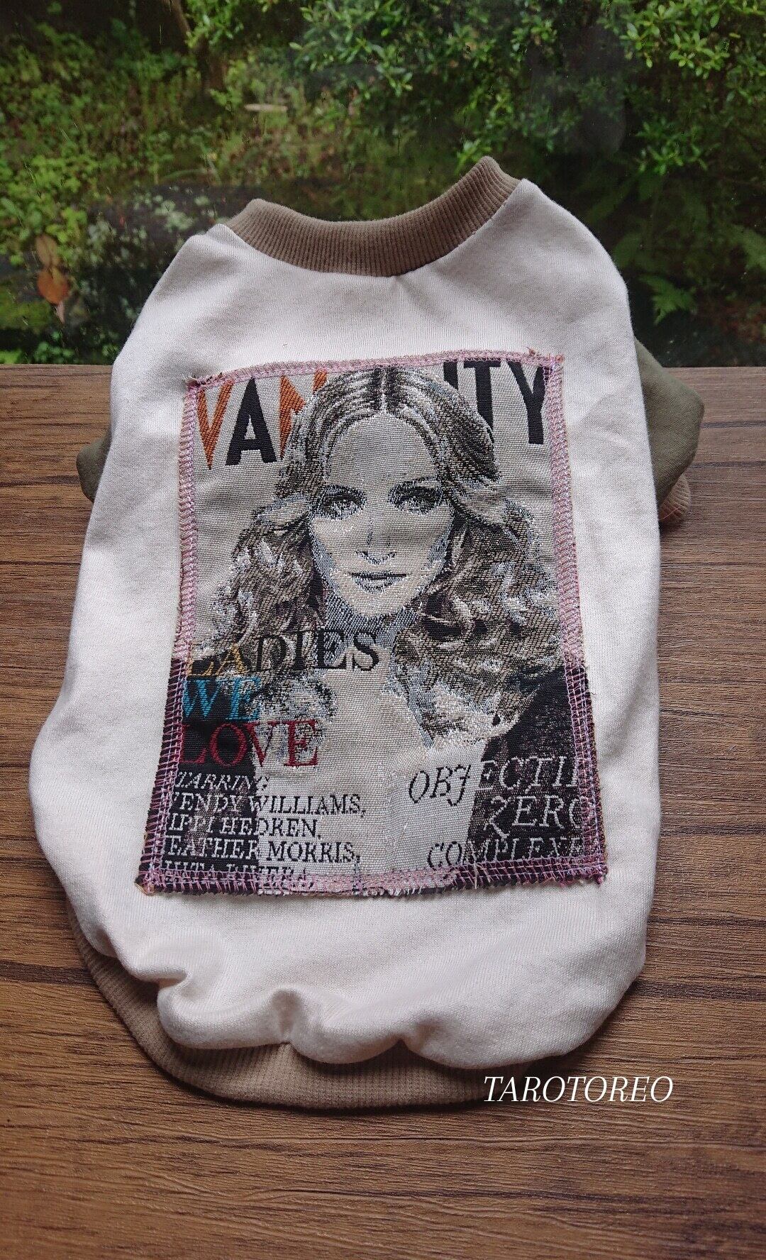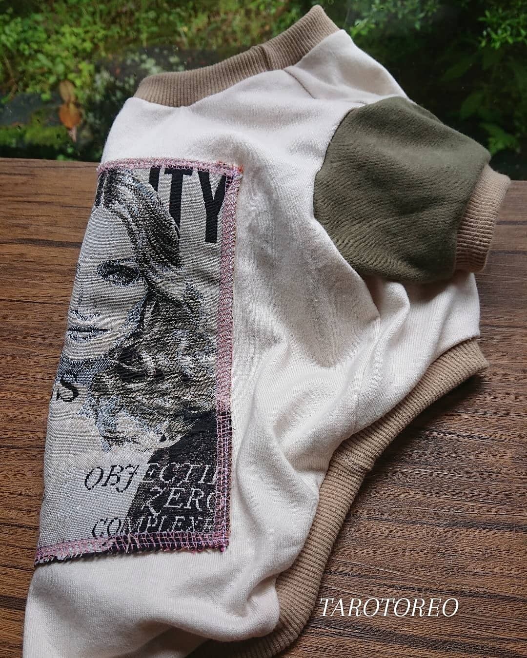 背中の絵柄は比較的柔らかいジャガード織りで縫い付けになります。小型犬専用です。