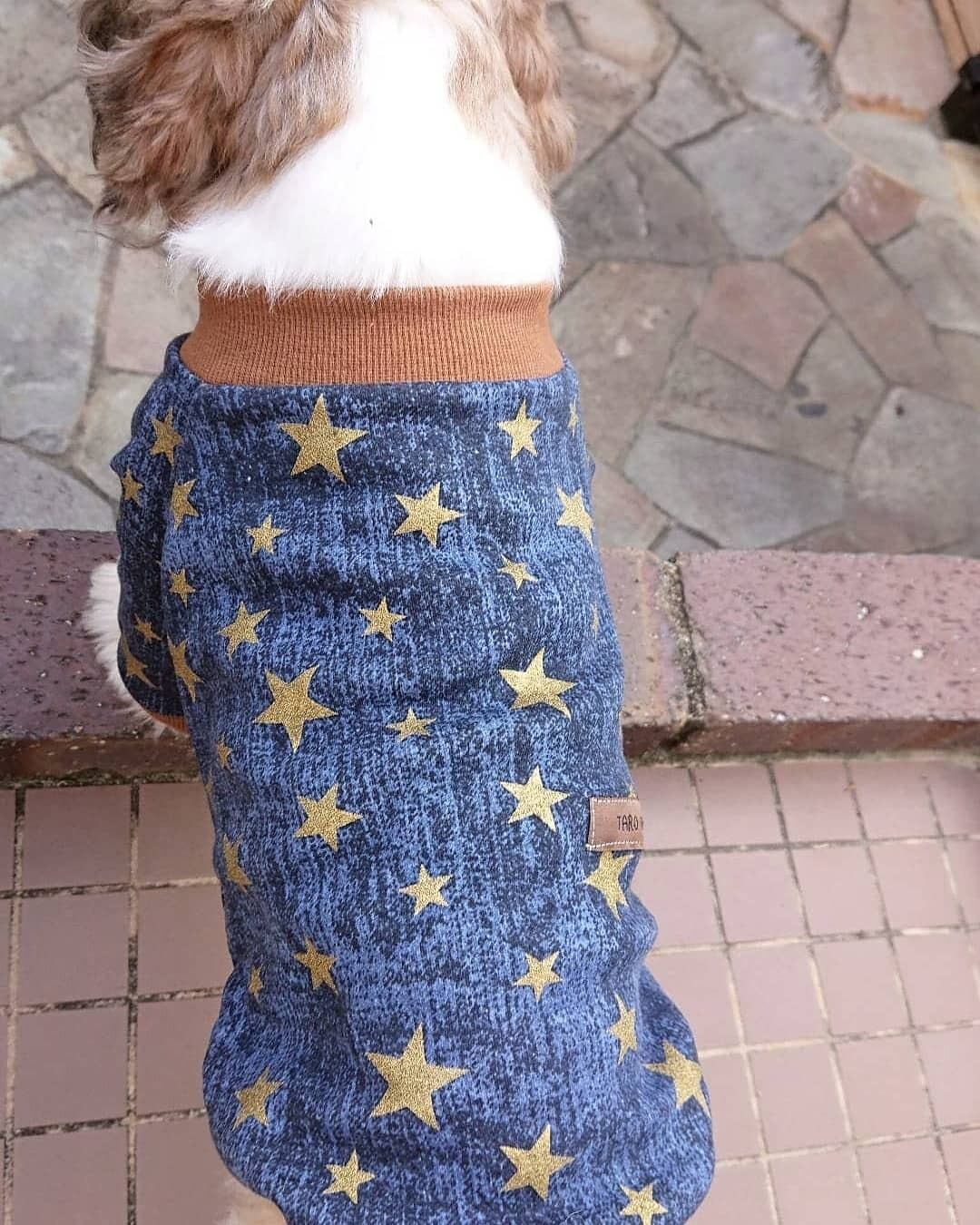 生地の厚みは中で柔らかいニットで着せやすく動きやすいお洋服です。小型犬専用です。