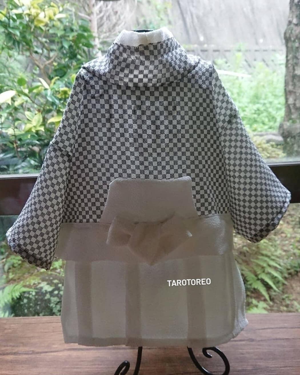 グレー×ホワイトの品ある男の子様袴です。ちりめん生地でさらっとしていて着せやすいお着物です。首もとはスナップボタン、ウエスト部分はマジックテープになります。