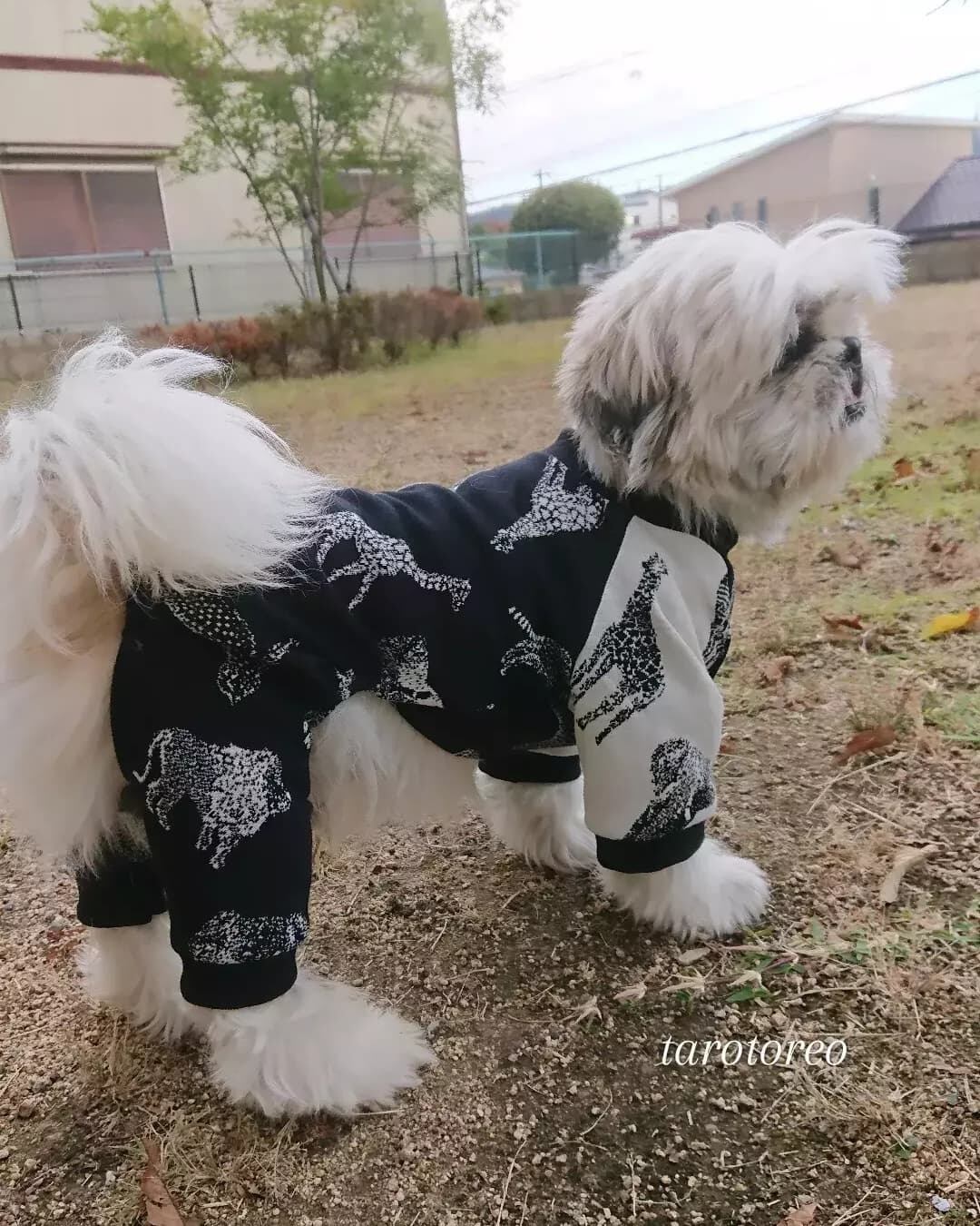 動物達もすごくかっこよくモノトーンでお洒落です。お散歩やお出かけにもストレスなく着れる生地です。