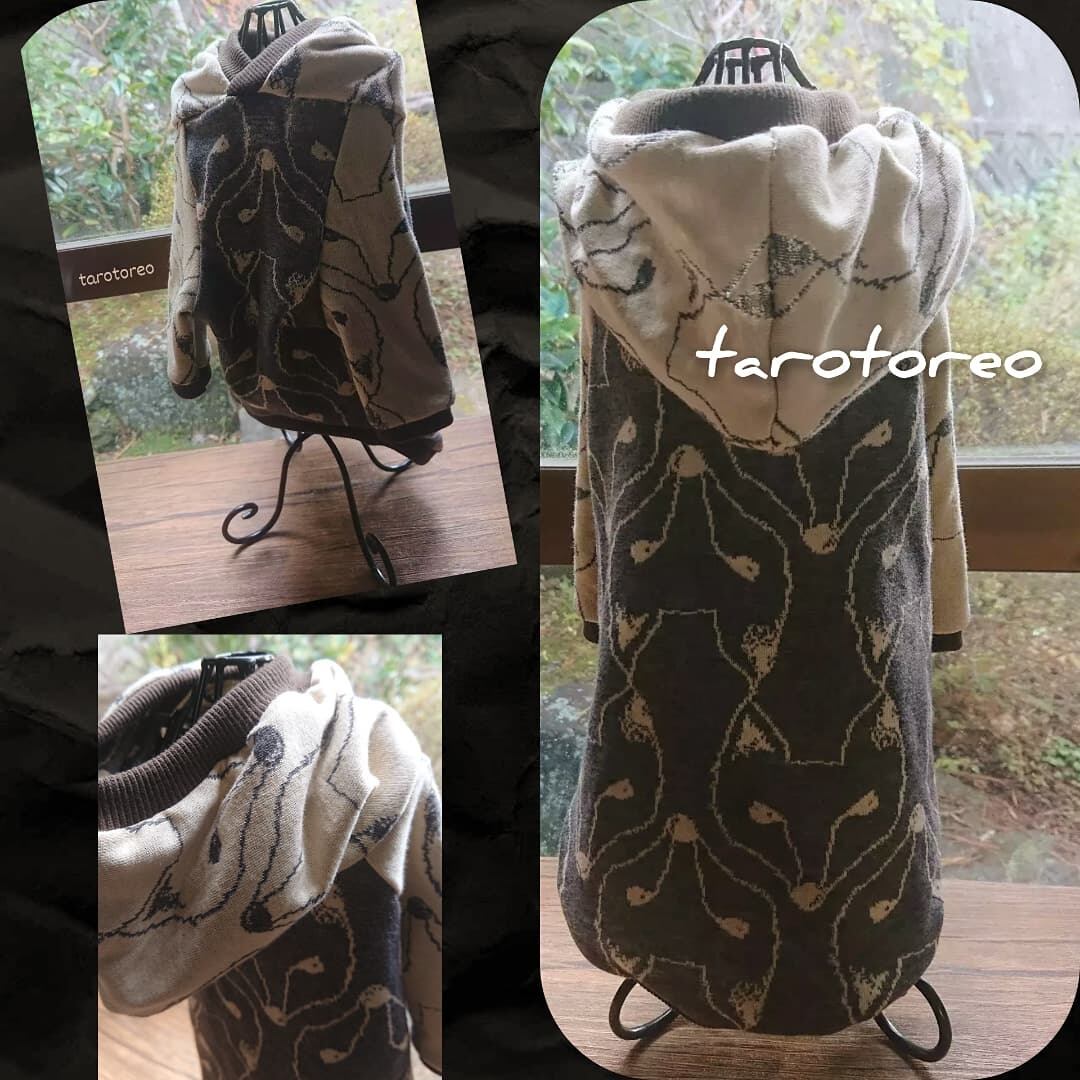 かっこいいきつね柄の綿100%リバーシブルジャガードニットのお洋服です。