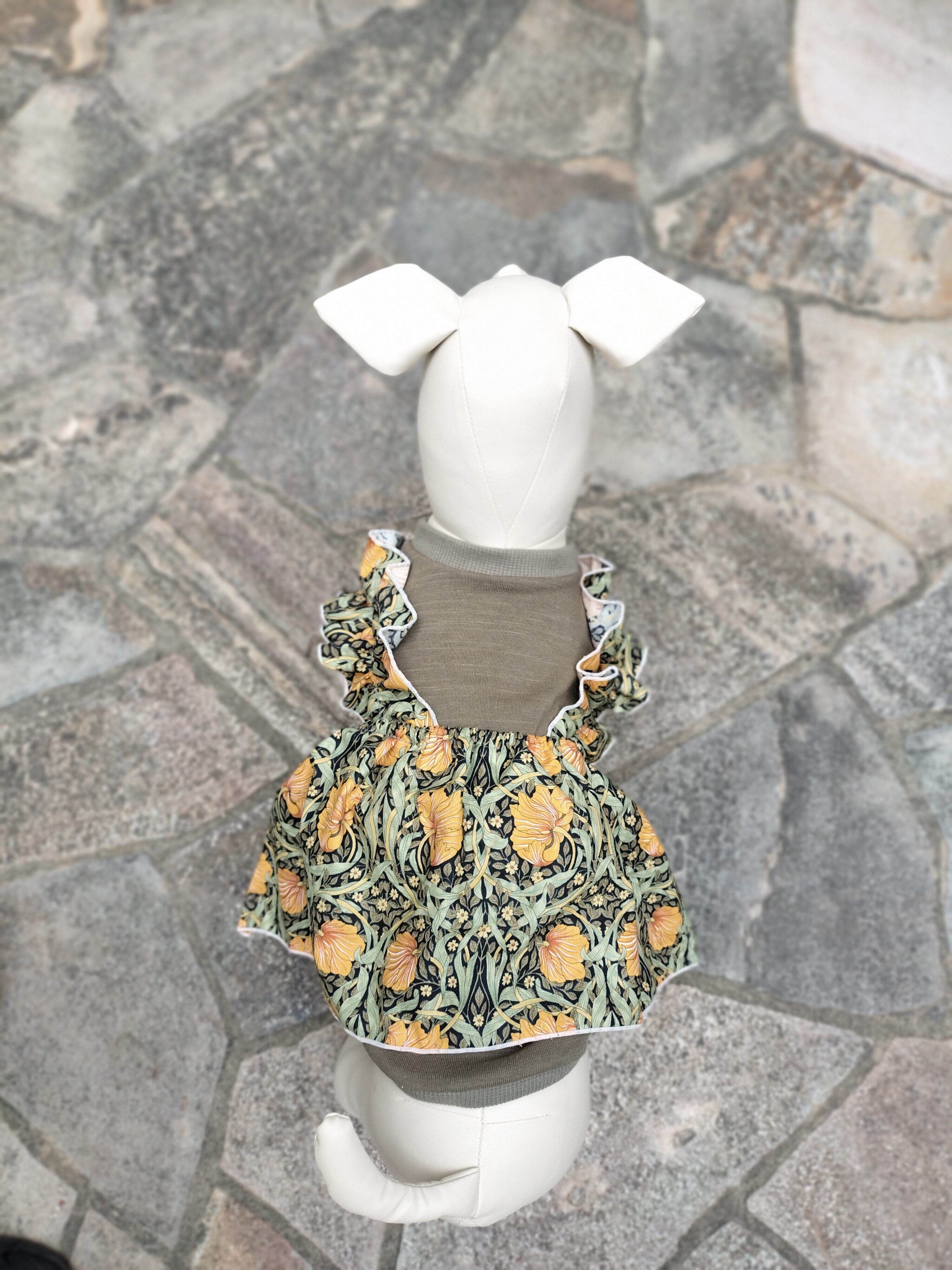 このクラシカルガーリーなワンピース風ニットで、わんちゃんの秋のおしゃれを楽しんでください。