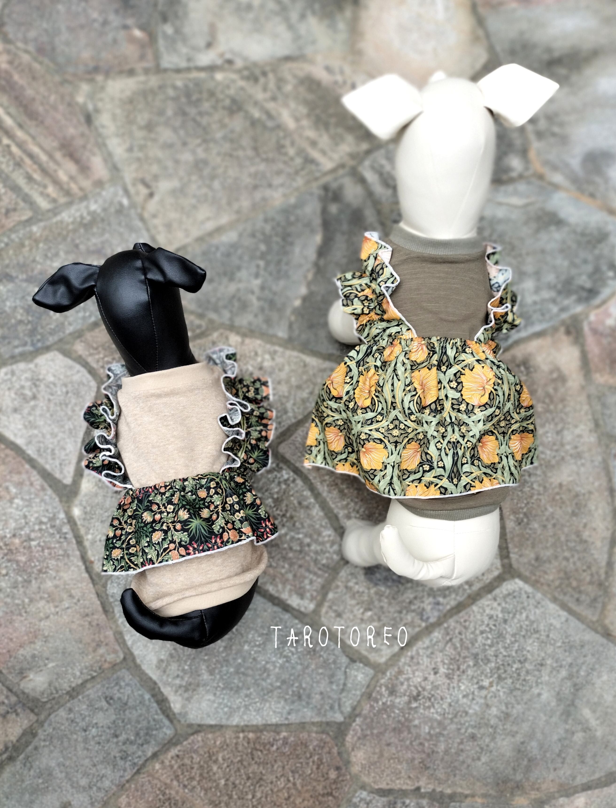 このクラシカルガーリーなワンピース風ニットで、わんちゃんの秋のおしゃれを楽しんでください。