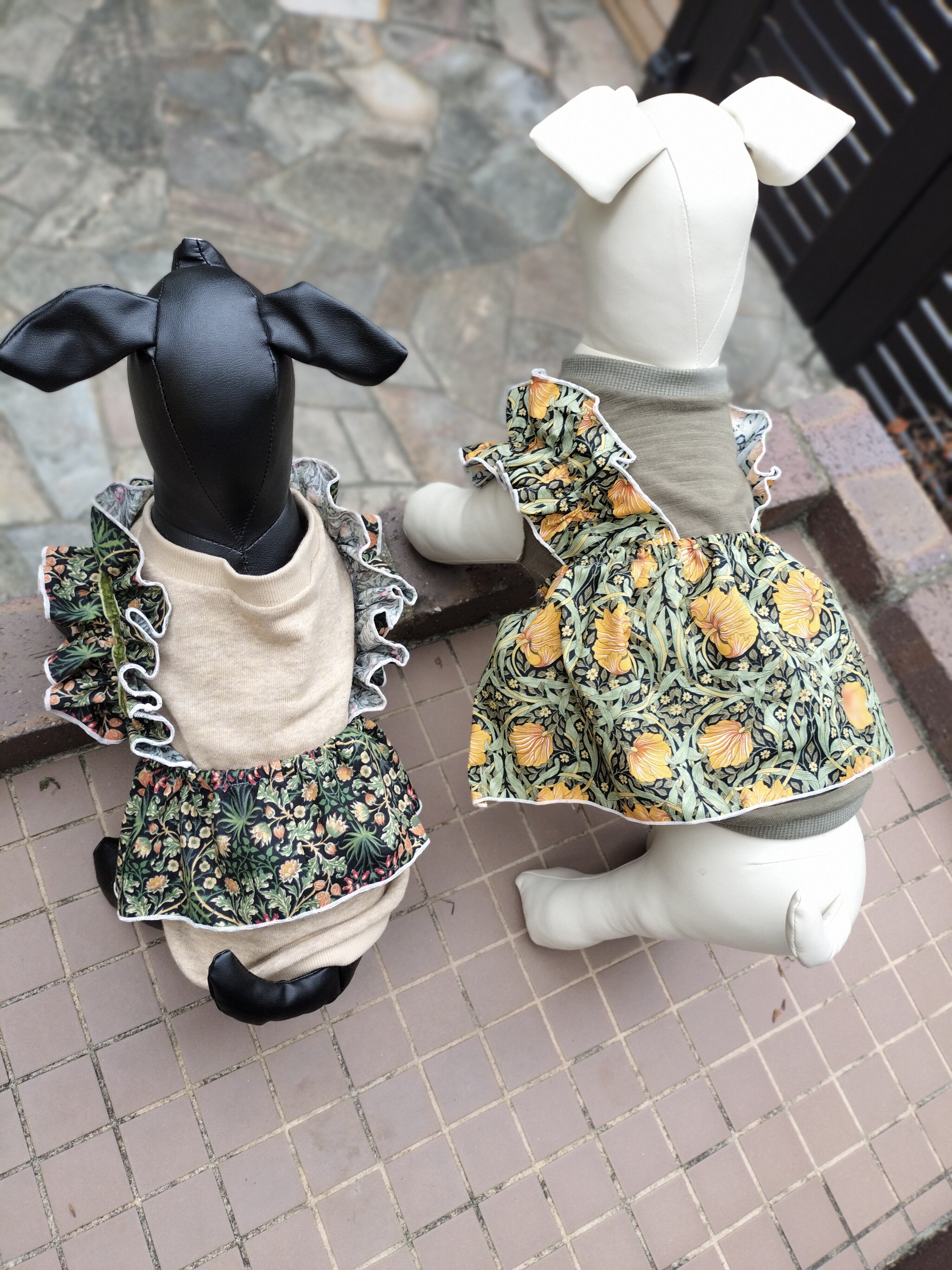 このクラシカルガーリーなワンピース風ニットで、わんちゃんの秋のおしゃれを楽しんでください。