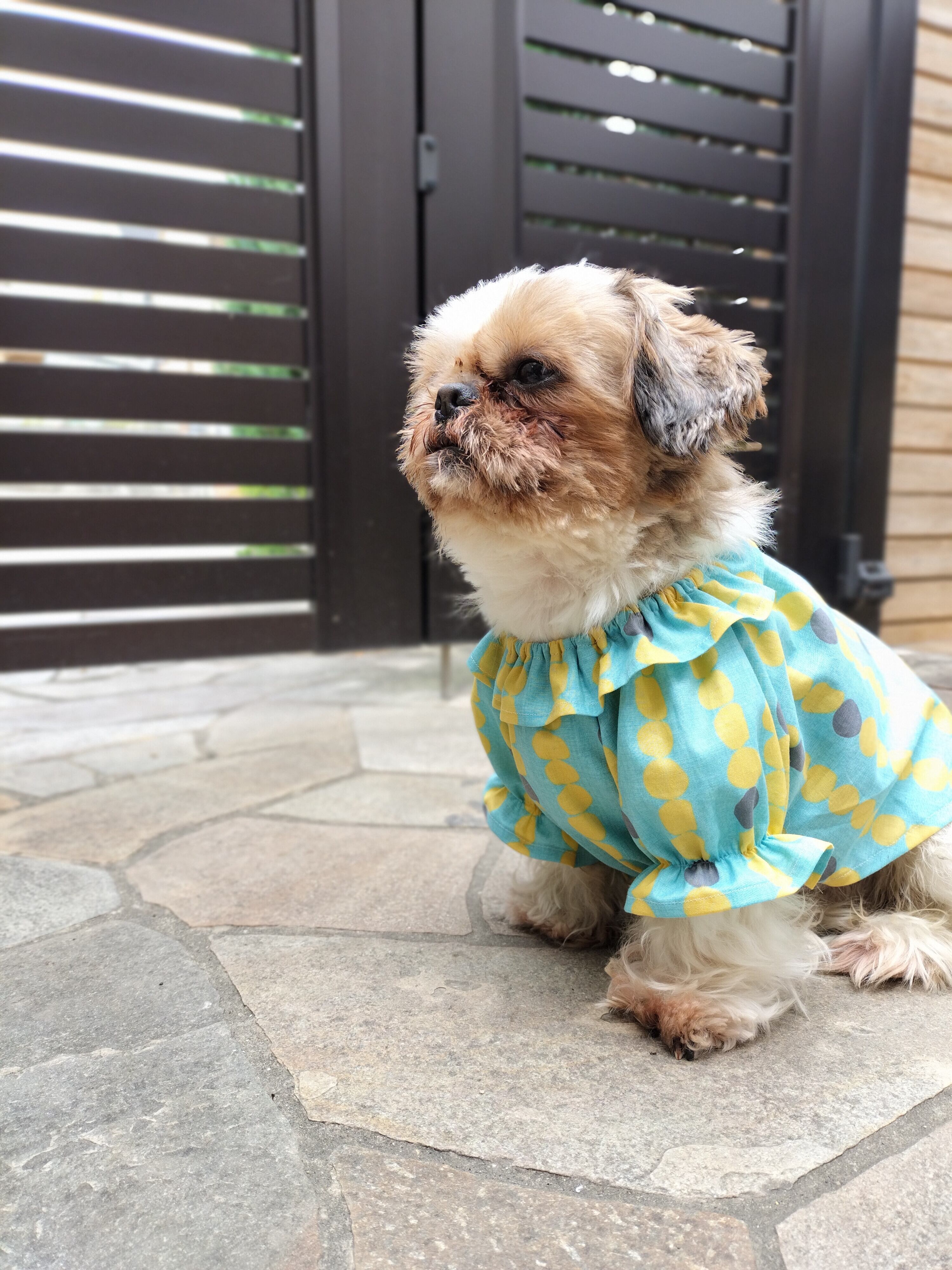春を感じさせるかわいらしいドットフリルシャツ。犬服でも人気のドット柄に、かわいいフリルがポイントです。カラフルな春色で、お出かけがますます楽しくなること間違いなし!